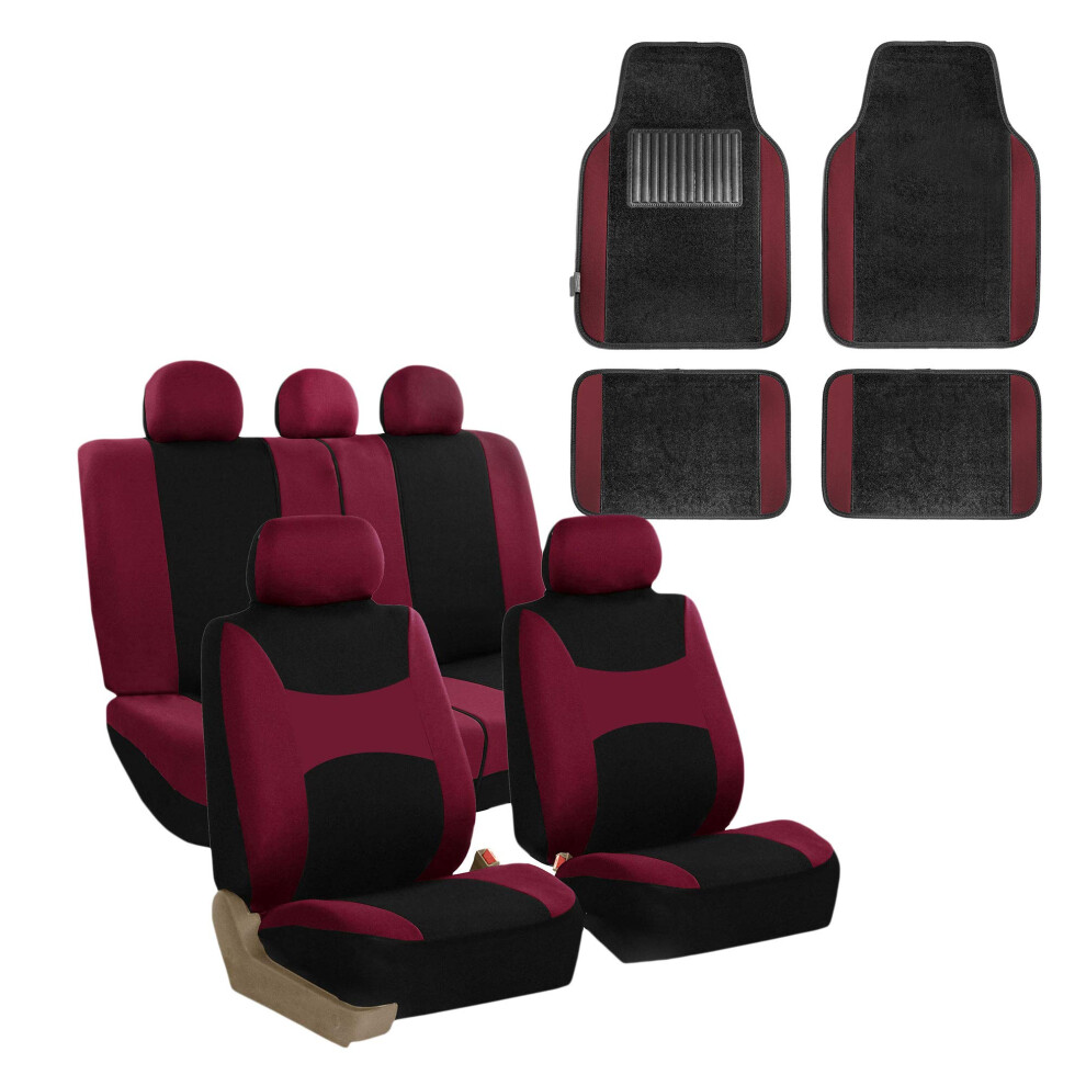 FH Group Light & Breezy Cloth Seat Full Car Seat Covers (Airbag & Split Ready) with Carpet Floor Mats- Universal Car Truck SUV or Van (Burgundy/Bl