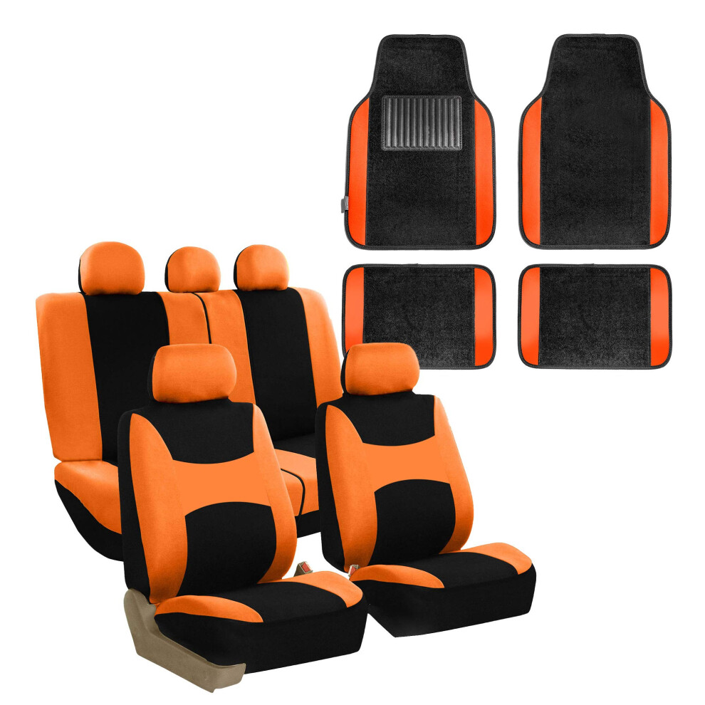 FH Group Light & Breezy Cloth Seat Full Car Seat Covers Airbag & Split Ready with Carpet Floor Mats- Universal Car Truck SUV or Van Orange/Black FB