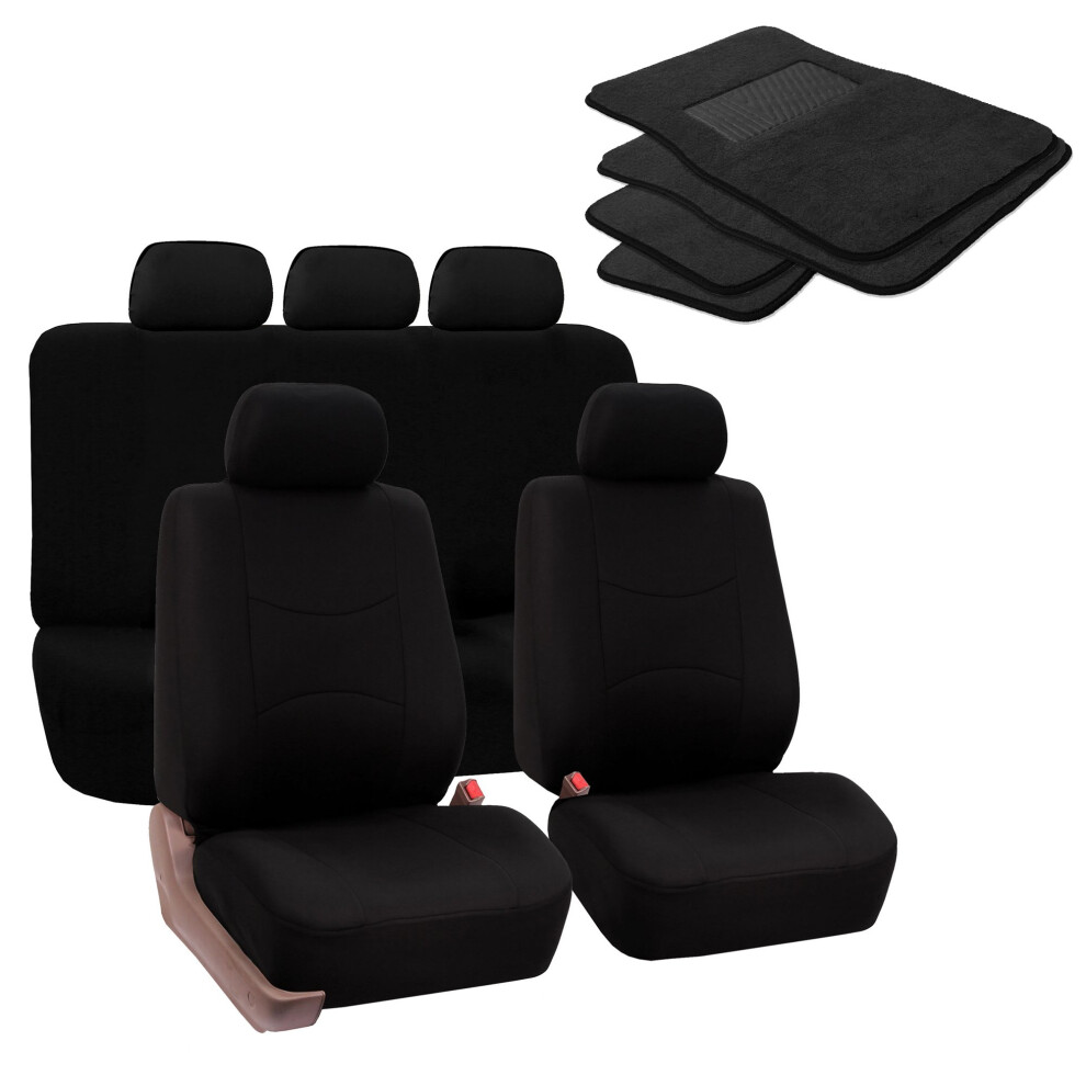 FH Group Flat Cloth Car Seat Covers and Carpet Floor Mats -Universal F