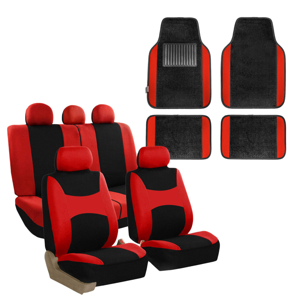 FH Group Light & Breezy Cloth Seat Full Car Seat Covers Airbag & Split Ready with Carpet Floor Mats- Universal Car Truck SUV or Van Red/Black FB030