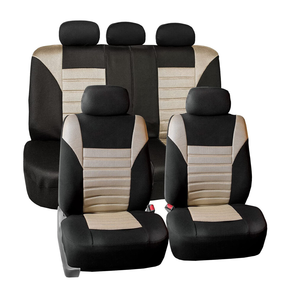 FH group car Seat covers Full Set Beige 3D Air Mesh - Universal Fit Automotive Seat covers Low Back Seat cover Airbag compatible Split Bench Rear