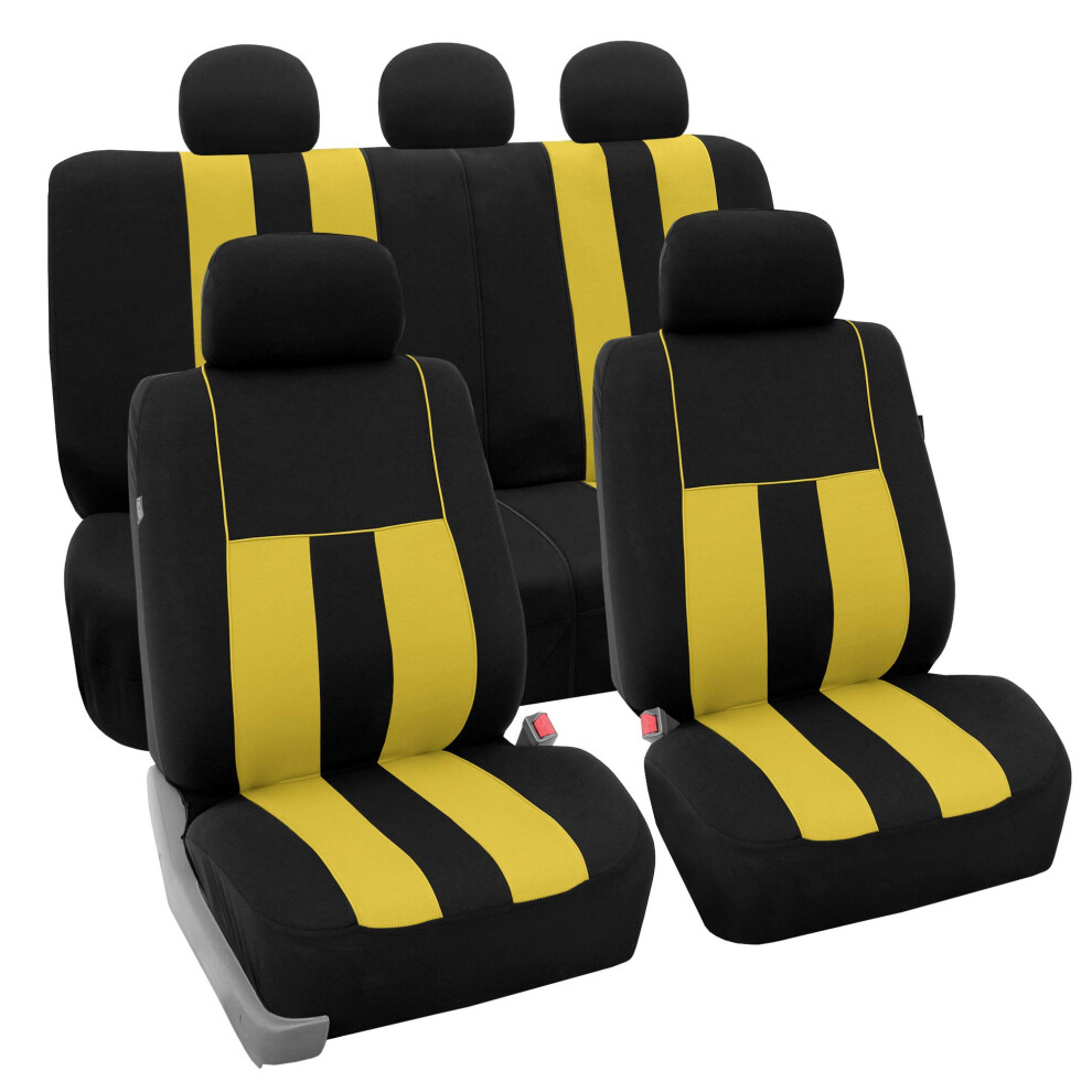 FH Group Car Seat Covers Full Set Yellow Cloth - Universal Fit Automotive Seat Covers Low Back Front Seat Covers Airbag Compatible Split Bench Rea