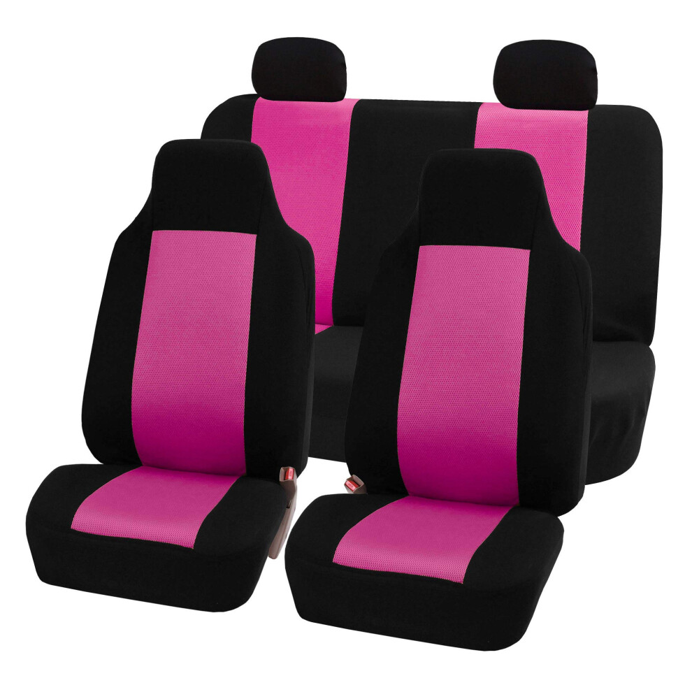 FH Group Light & Breezy Cloth Seat Full Car Seat Covers Airbag & Split Ready with Carpet Floor Mats- Universal Car Truck SUV or Van Pink/Black FB03
