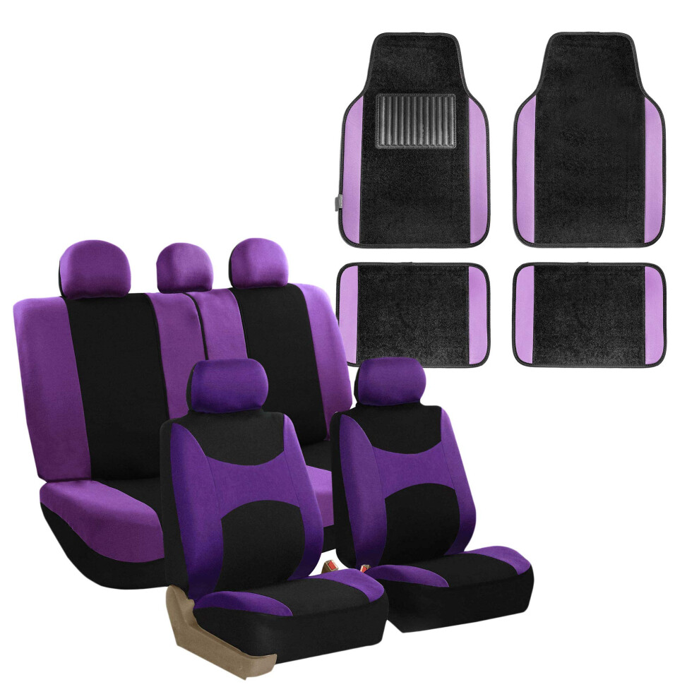 FH Group Light & Breezy Cloth Seat Full Car Seat Covers Airbag & Split Ready with Carpet Floor Mats- Universal Car Truck SUV or Van Purple/Black FB
