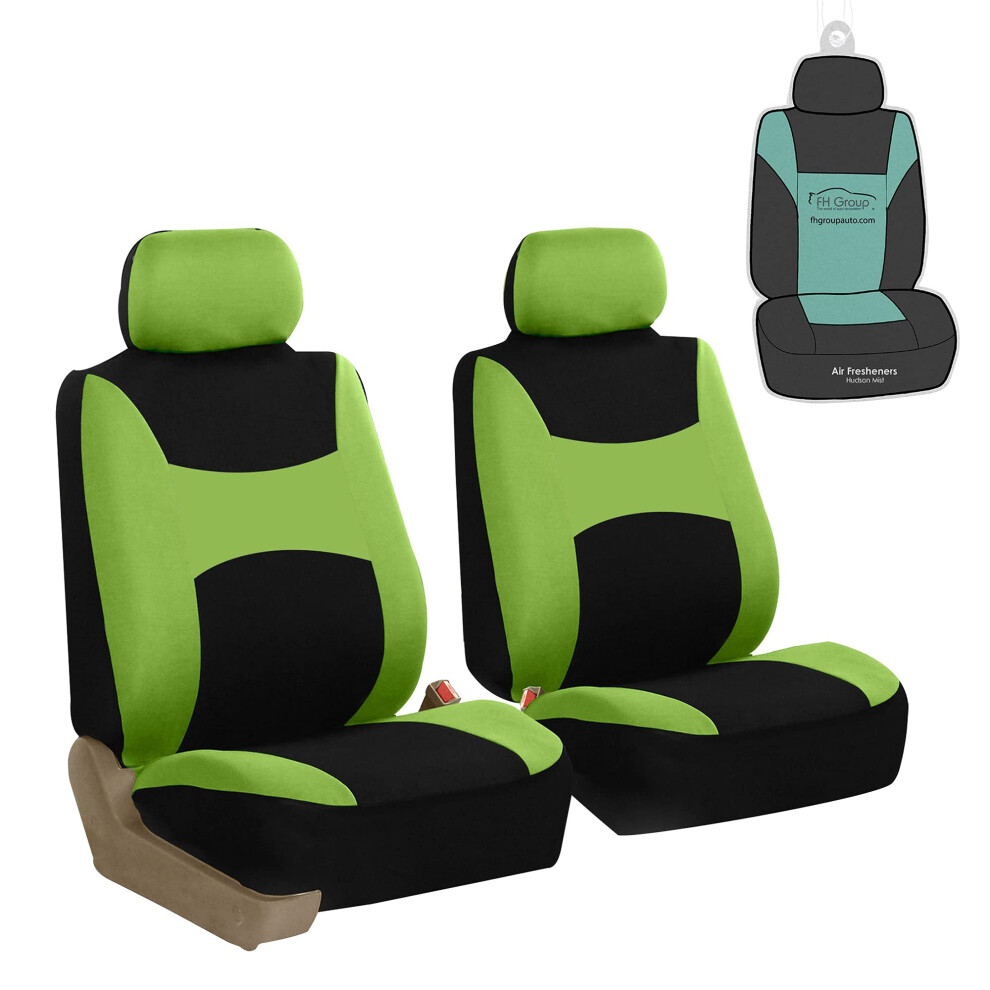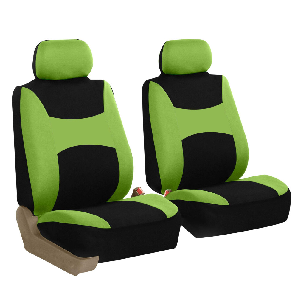 FH Group Car Seat Covers Light & Breezy Flat Green Cloth Front Seats Only Automotive Seat Covers Airbag Compatible Universal Fit Interior Accessories