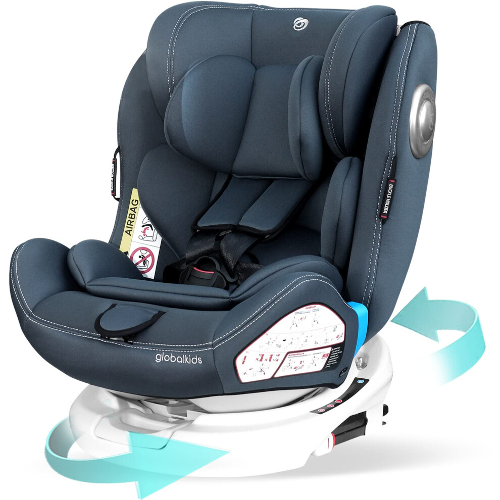 globalkids 360 Swivel Baby Car Seats - Group 0+1/2/3(0-36 kg) for 0-12 Years with ISOFIX Child Car Seats, Grey