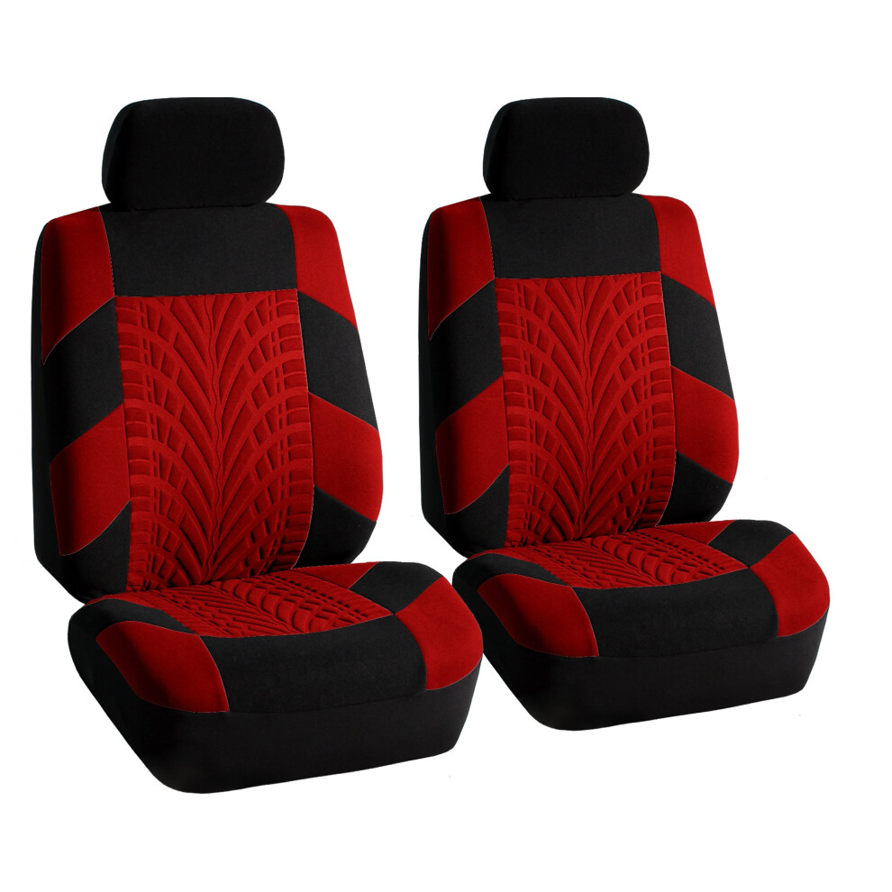 FH Group Car Seat Covers Front Set Red Cloth - Seat Covers for Low Back Car Seats with Removable Headrest Universal Fit Automotive Seat Cover Airba