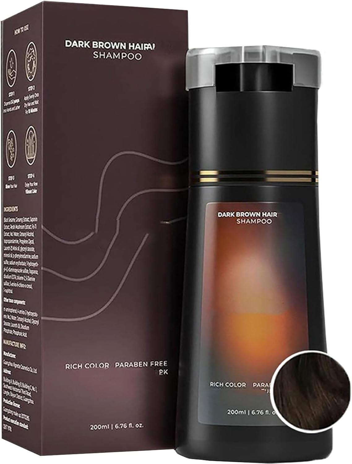 Hair Dye Shampoo Dark Brown, Haircare Hair Colour Shampoo, 3-in-1 Coloring & Ca