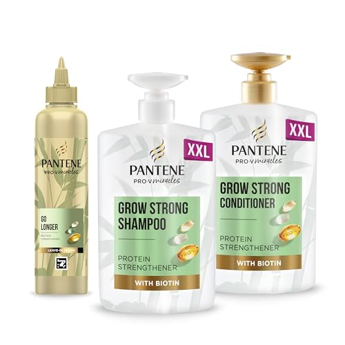 Pantene Grow Strong Shampoo and Conditioner Set and leave in cream to promote hair growth. For dry, damageed hair, helps reduce hair loss, strengthen and thicken hair.