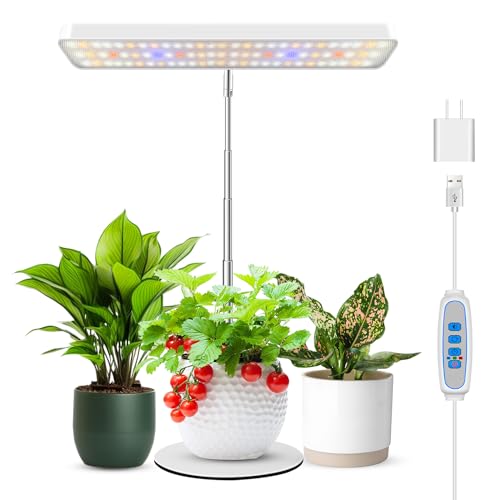 Ainiv Grow Light, 48 LEDs Full Spectrum Growing Lamp for Indoor Plants, 9 Adjustable Brightness 180° Rotatable Light Panel, Height Adjustable with Auto On/Off Timer 3/9/12H, for Small Plant-Warm White