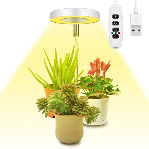 Gosera Full Spectrum LED Grow Light Auto On/Off Timer Ceiling Under Cabinet Plant Growing Lamp Yellow and White Light Flower Rack Plant Potted Plants Flowers Full Spectrum 1 Pcs