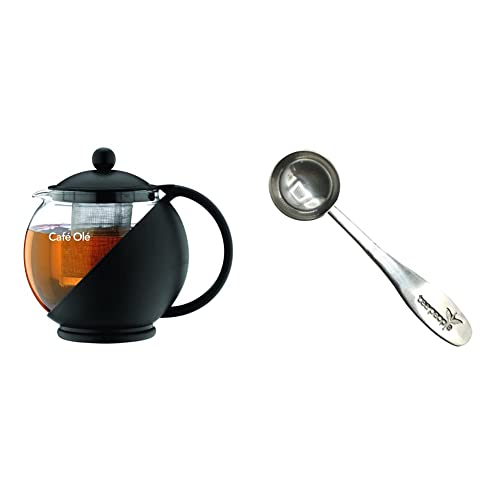 Café Olé Grunwerg Café Ole Loose Leaf Everyday Round Tea Pot Infuser Basket Glass Teapot, Black & Tea People Measuring Spoon for Loose Leaf Tea, 1 Perfect Cup Size S/Steel, Silver