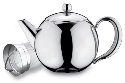 Cafe Ole by Grunwerg RTD-12 Rondeo 18/10 Stainless Steel Double Wall Teapot with Infuser, 1.2 litres, Stainlesssteel, Silver