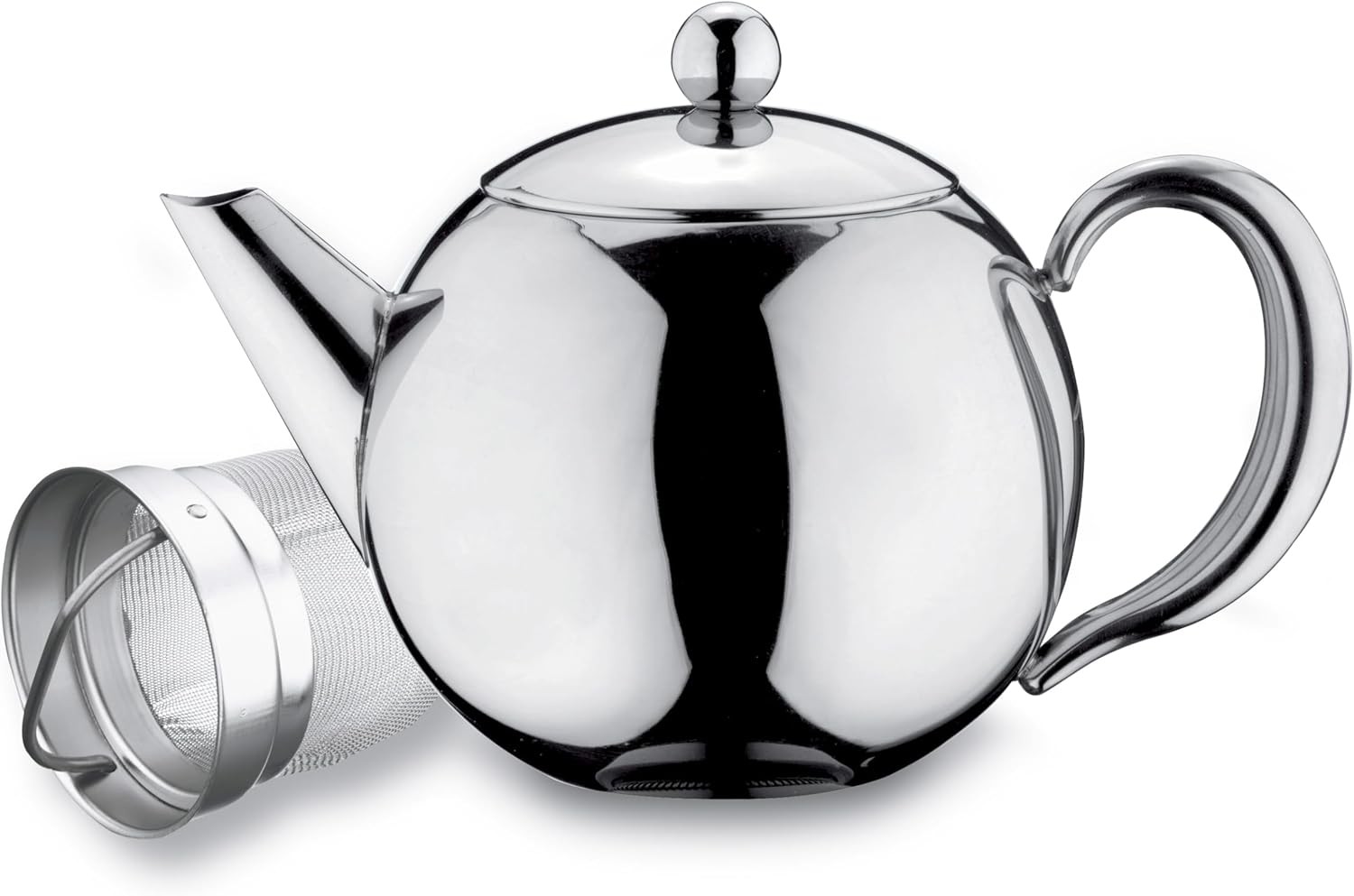 Cafe Ole by Grunwerg RTD-12 Rondeo 18/10 Stainless Steel Double Wall Teapot with Infuser, 1.2 litres, Stainlesssteel, Silver