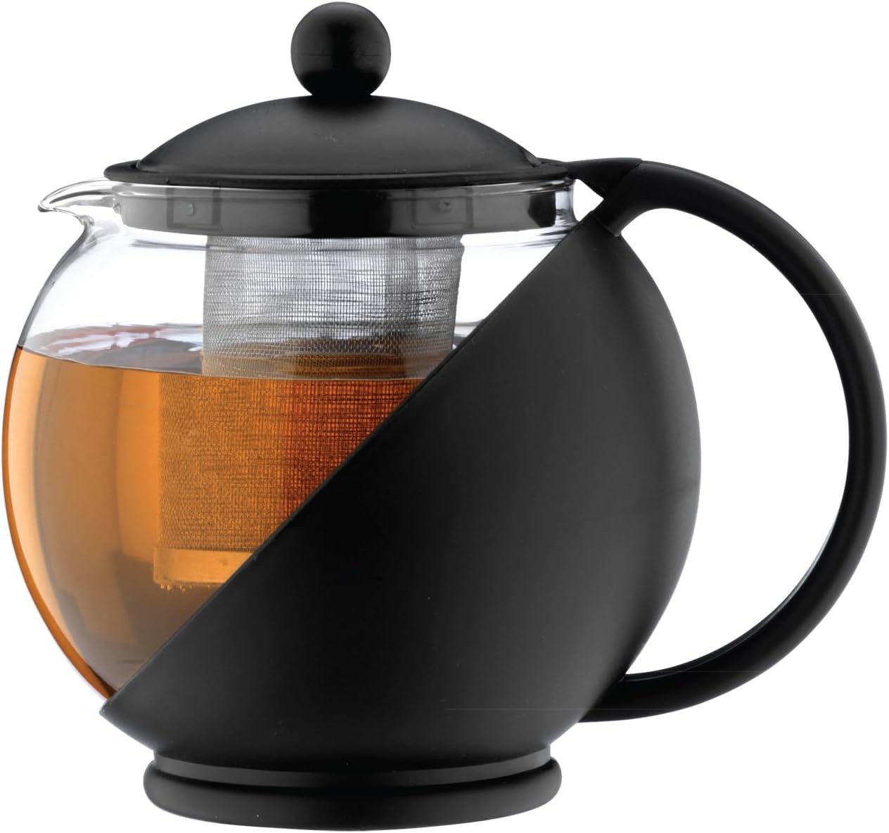 Café Olé Plastic and Glass Teapot with Infuser, Loose Leaf Tea Strainer, 1200ml
