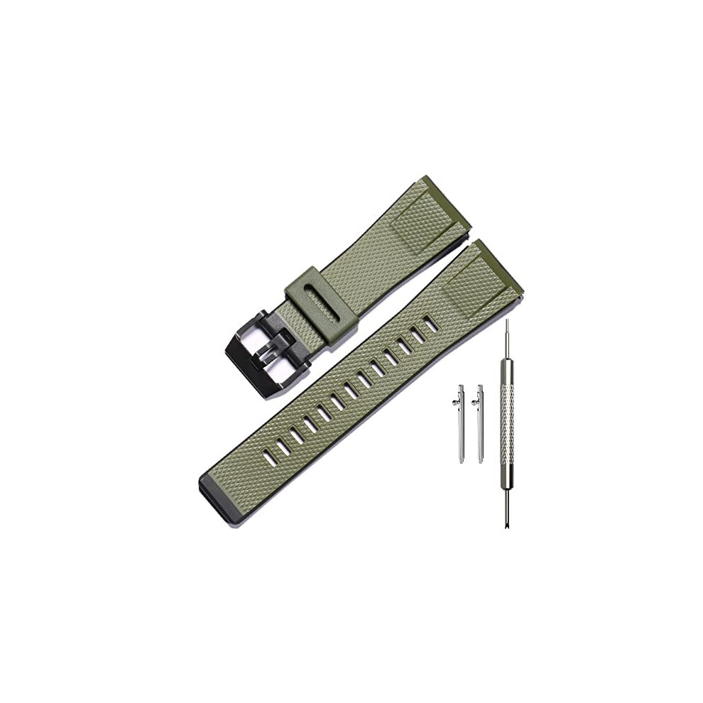 ROUREOX 24Mm Straight End Silicone Watch Strap, Men's Soft Replacement Silicone Rubber Band for Casio G-Shock GA-2000/PRG-600/PRW-6600/PRG-650-Green 24MM
