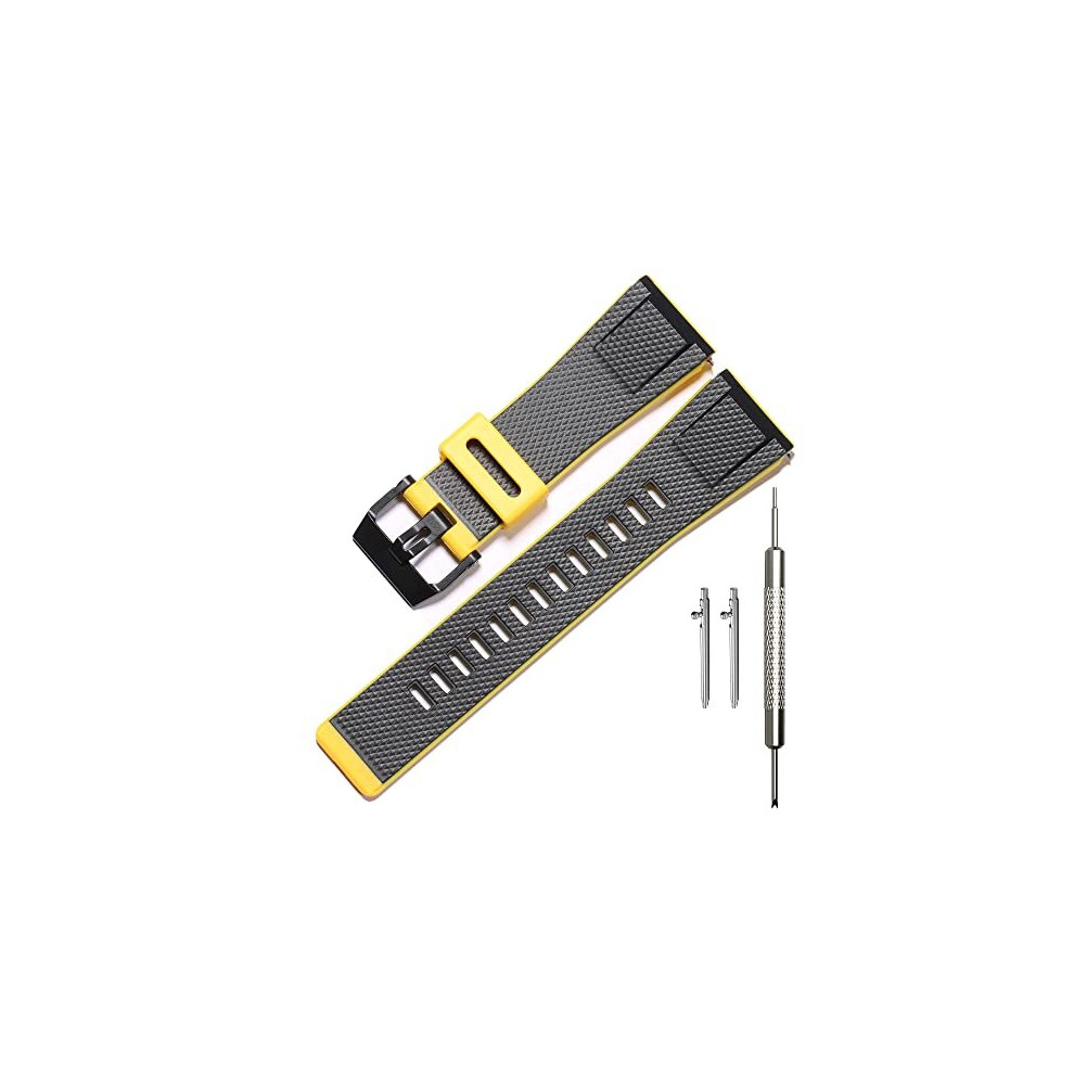 ROUHO 24mm Replacement Rubber Watch Band Durable Sports Watch Wristband for Casio G-Shock GA-2000 PRG-600 PRW-6600 PRG-650-Yellow