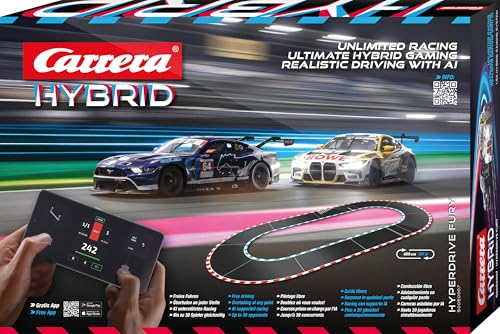 Carrera Hybrid Hyperdrive Fury, New Generation Racing Fun, With Ford Mustang No.64 and BMW GT3 No.99, 1:50 Scale, Hybrid Tech with AI Support, Control via Smartphone App, Suitable For 10 Years+