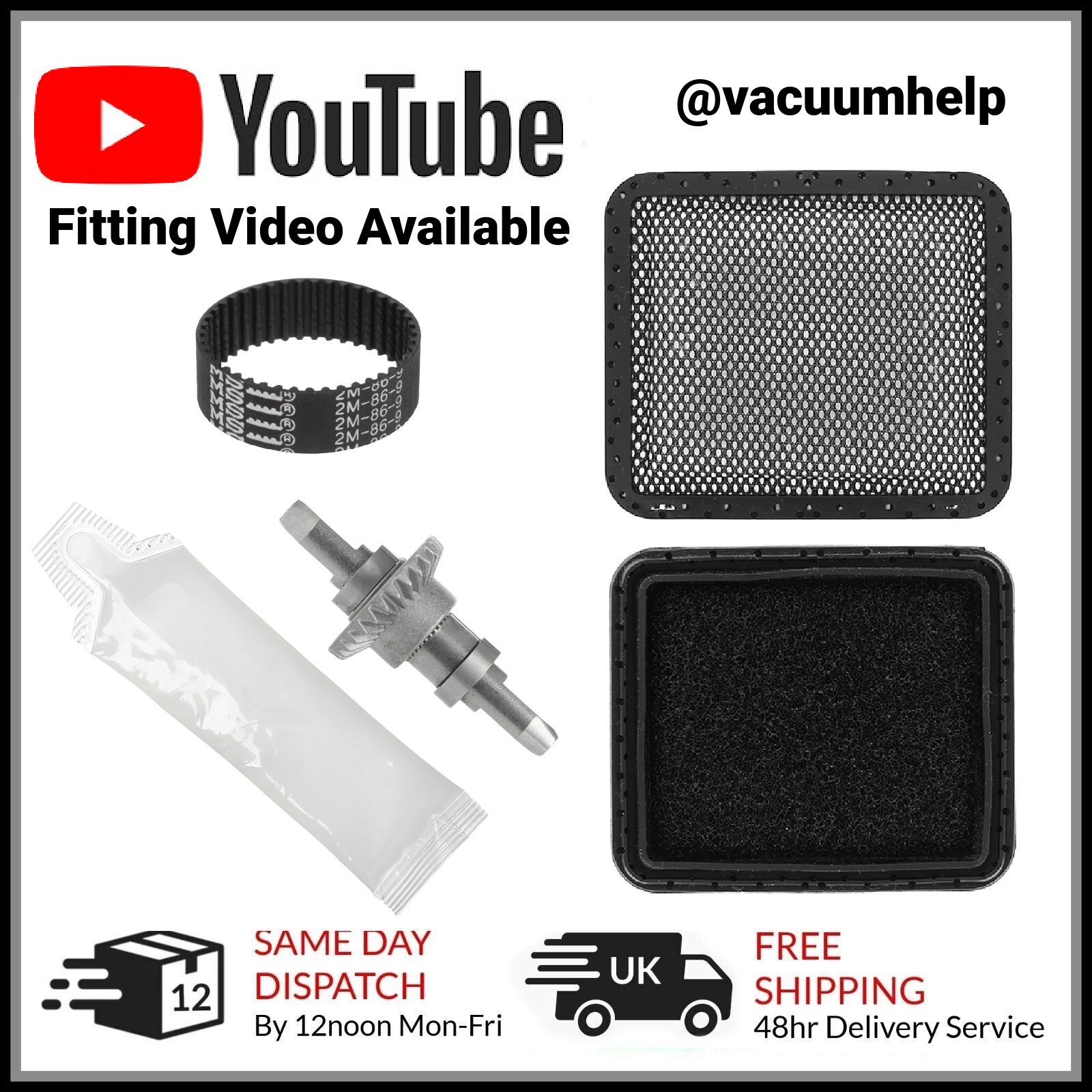 Gtech AirRam Mk1 Service Kit Cog Belt & Filters | AR01 AR02 AR05 DM001 K9 MK1