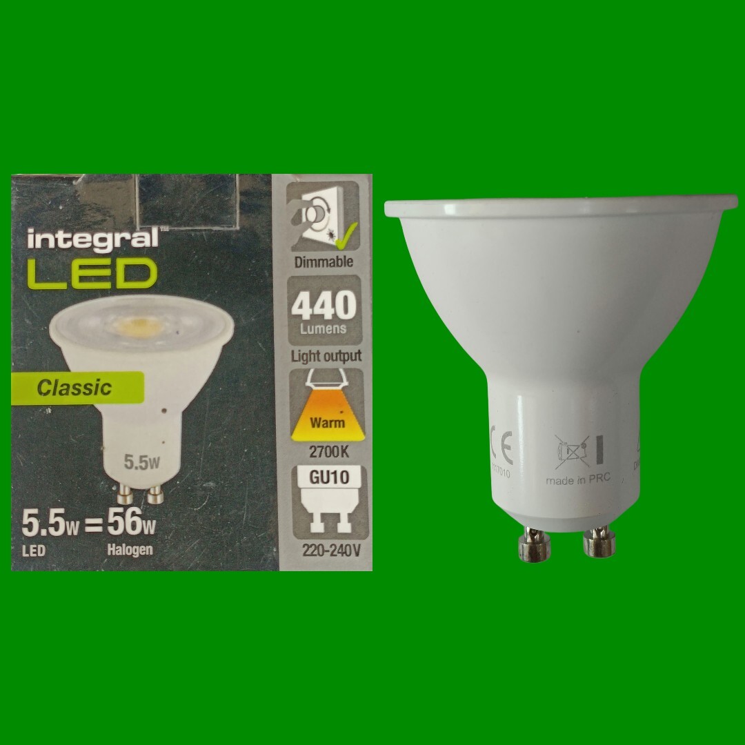 GU10, Warm white (<4000K) , Low energy/Compact fluorescent lamp