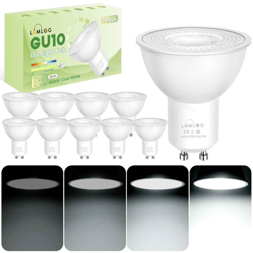 GU10, Dimmable, Cool white (4000K-6000K), LED (Light emitting diode)