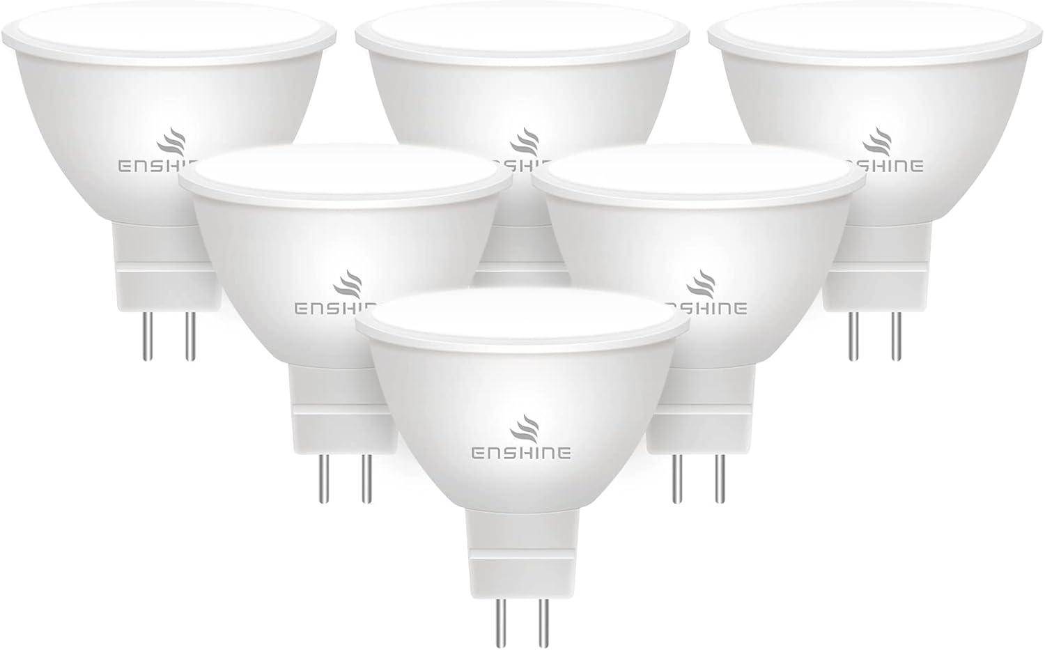 Enshine 6Pack MR16 LED Bulbs Cool White 6000K, 12V GU5.3 LED Spotlight, 5W=50W, Non-Dimmable, 13Yr Lifespan, 6000K Cool Light, 120 Beam Angle