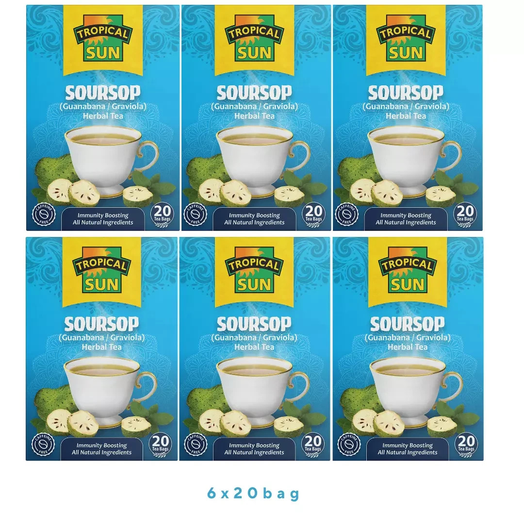 6 X Tropical Sun Soursop Guanabana/Graviola Herbal Tea | 20 Tea Bags Each box