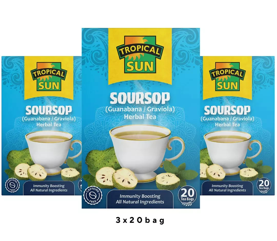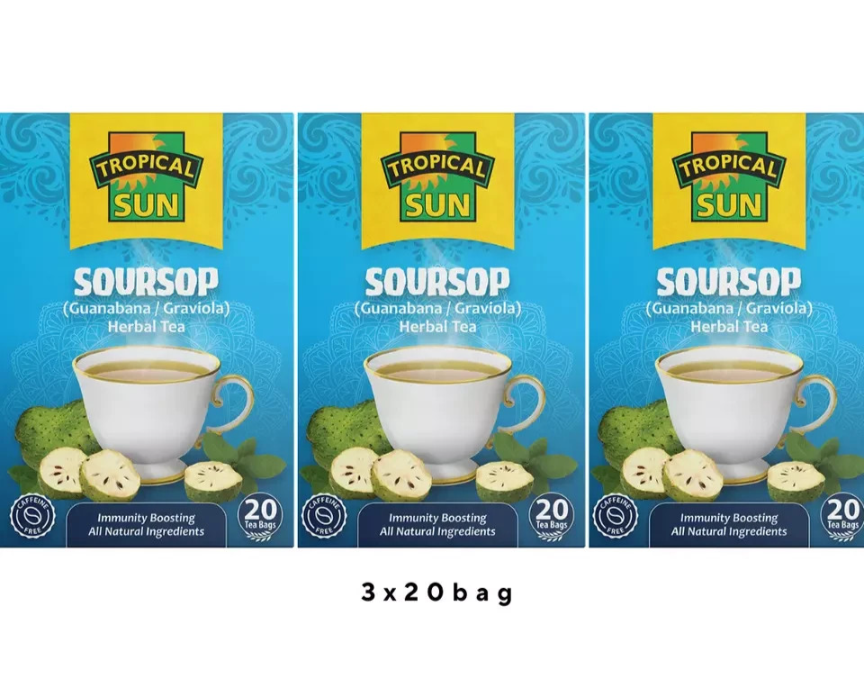 3 X Tropical Sun Soursop Guanabana/Graviola Herbal Tea | 20 Tea Bags Each box