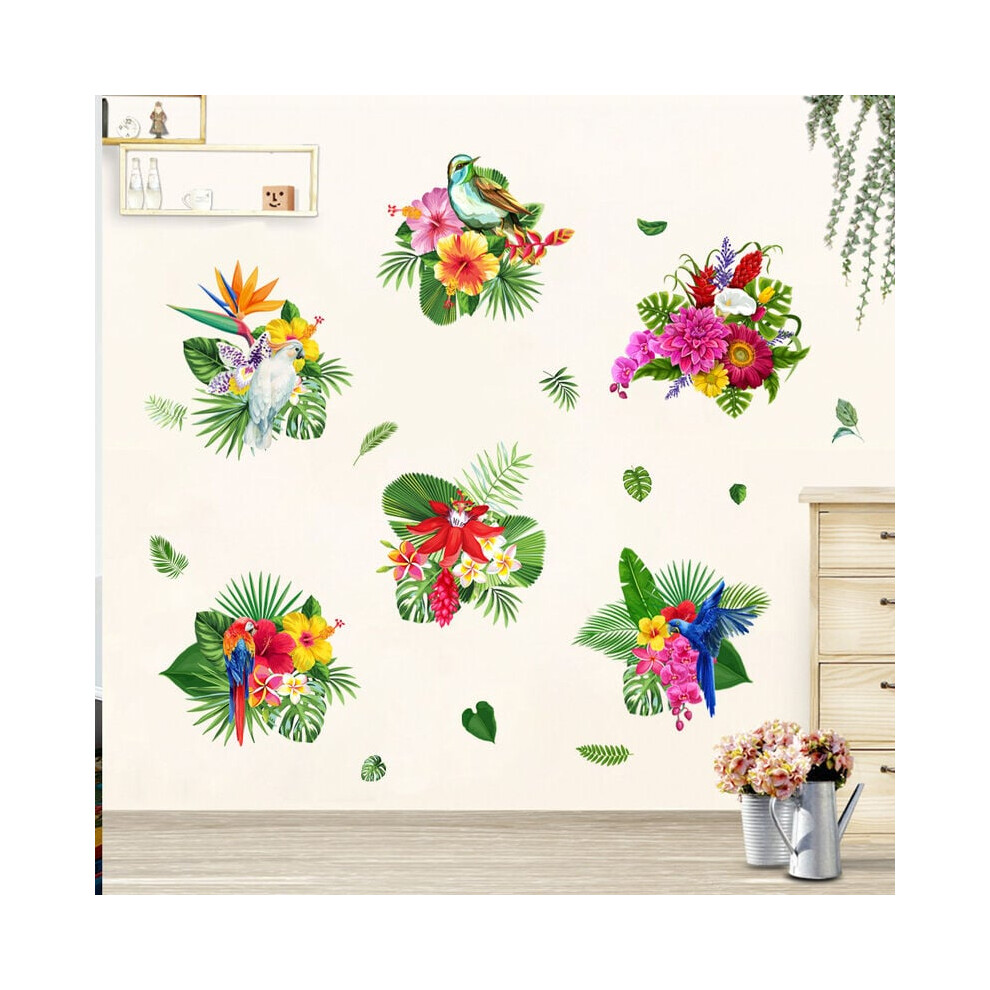 Transformative Furniture Guardian, Universal Sofa Cover, Wear-Resistant, Quick-Apply Tropical Parrots Wall Stickers, Birds Removable Decals for