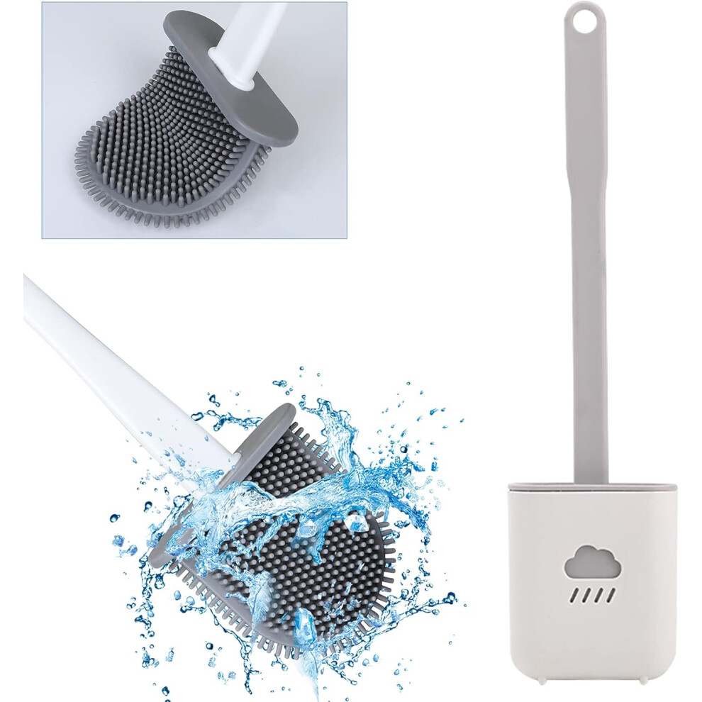 Hygiene Guardian, Self Cleaning Silicone Toilet Brush With Quick Drying Holder, Long Handled Toilet Brush For Deep Cleaning Under Rim And Corners