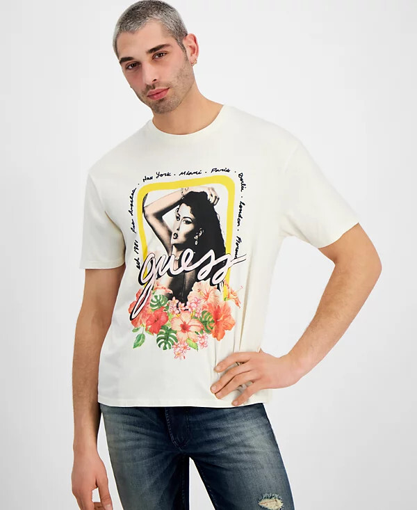 GUESS Men's Eco Girl Collage Tee, Vanila Cream Multi, Medium