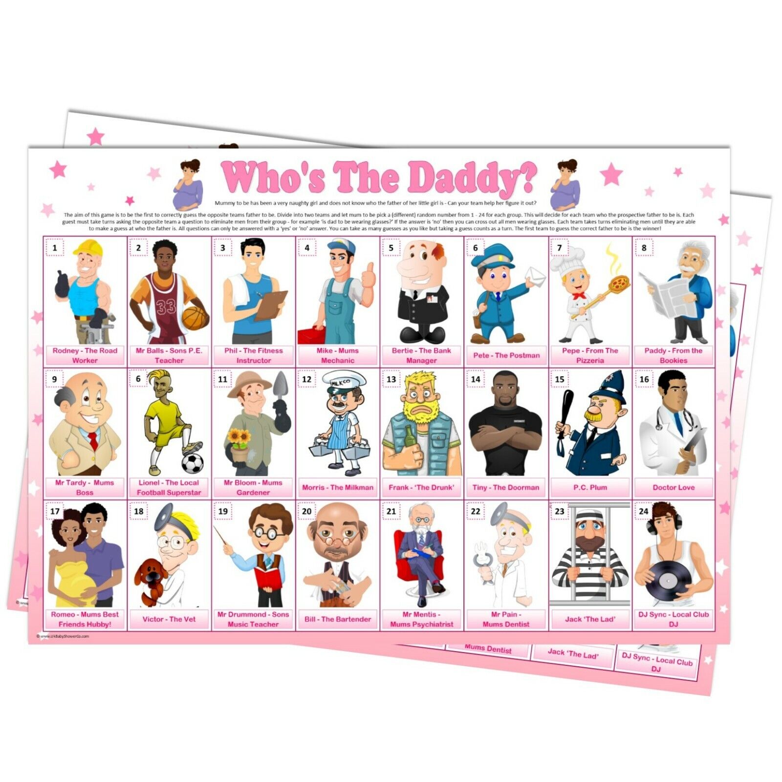 Baby Shower Game - Guess WHO'S THE DADDY - PINK Stars Girl Party Team Fun,Groups