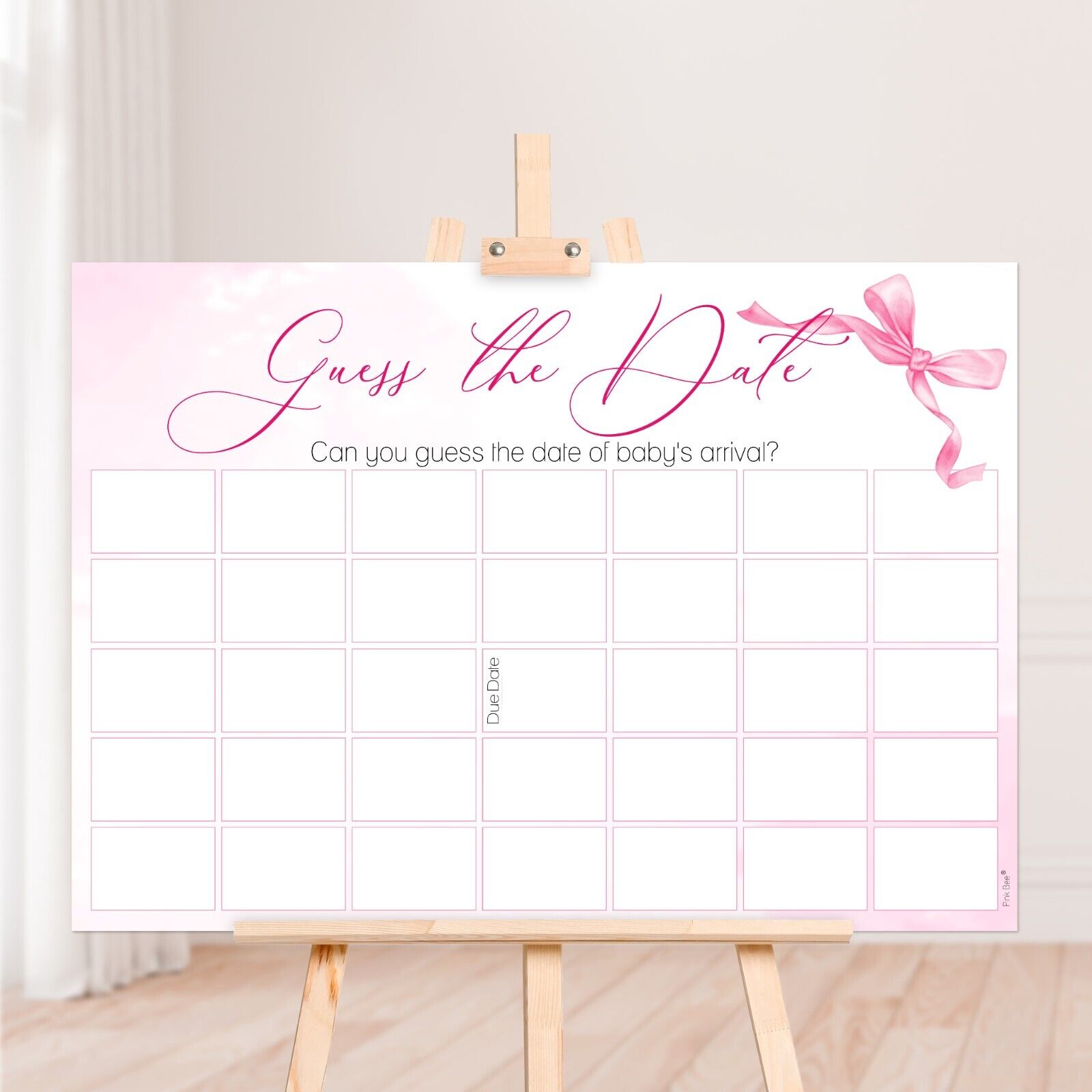 Guess The Date- Pink Bow Theme, Girl, Ribbon, Baby Shower Game, Labour, Pregnant