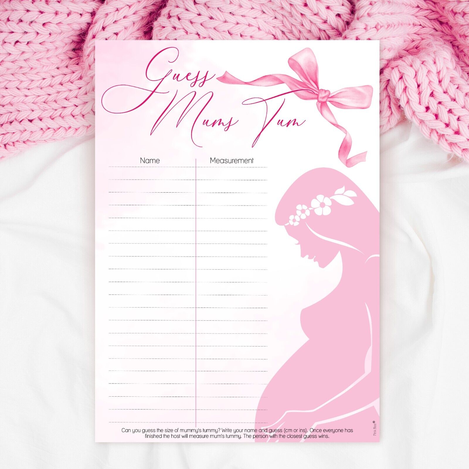 Guess Mums Tum - Baby Shower Pink Bow Theme, Girl, Ribbon, Stylish, Bump, Sweet