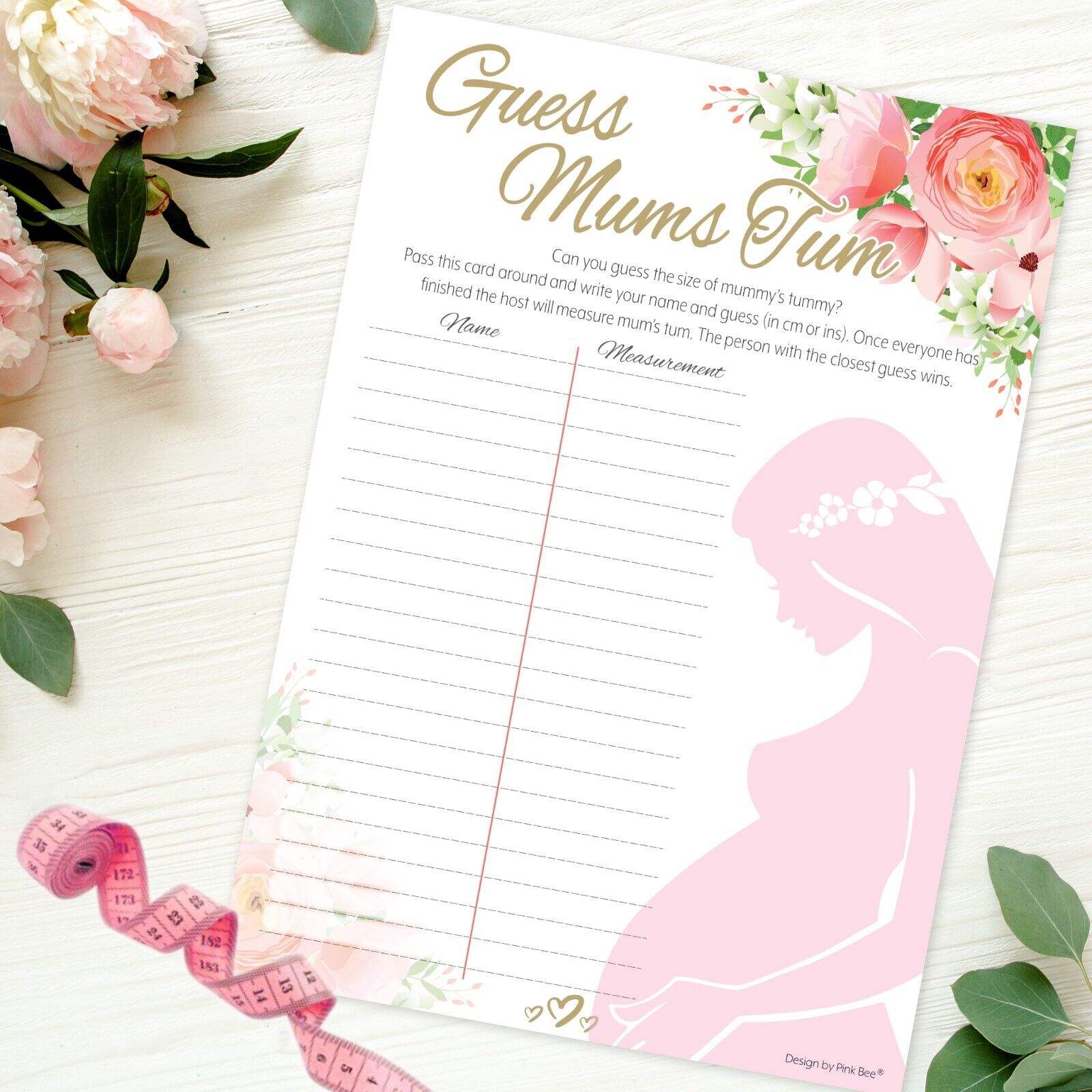 GUESS MUMS TUM - Baby Shower Pink Floral Girl Measure Bump Pregnant Flowers Leaf