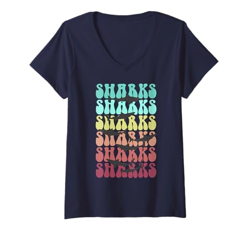 Womens Retro Shark Ocean Club Beach Survivor Lifeguards Surf Girl V-Neck T-Shirt