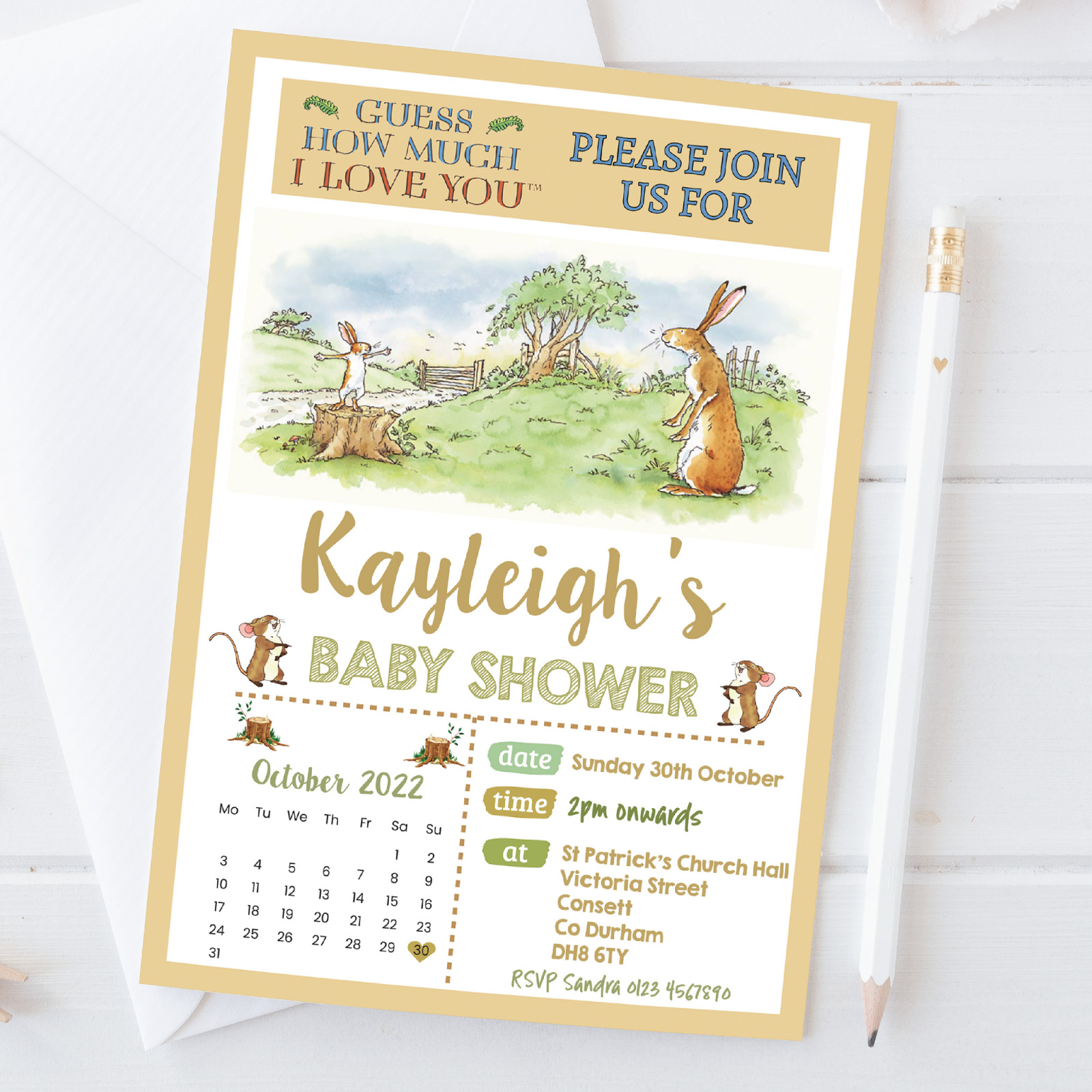 Personalised Baby Shower Invitations Guess How Much I Love You Invites x10