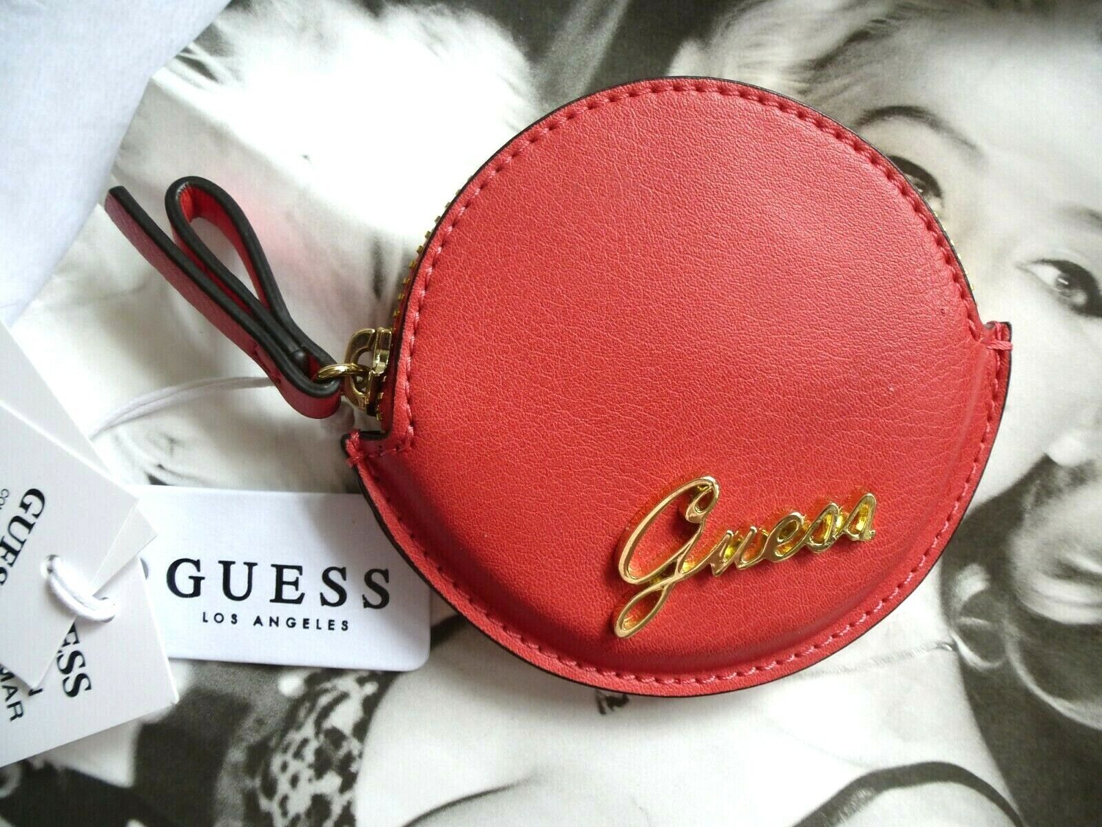 Genuine GUESS Red ZIPPED COIN MONEY POUCH Purse - Tag NEW Jos1