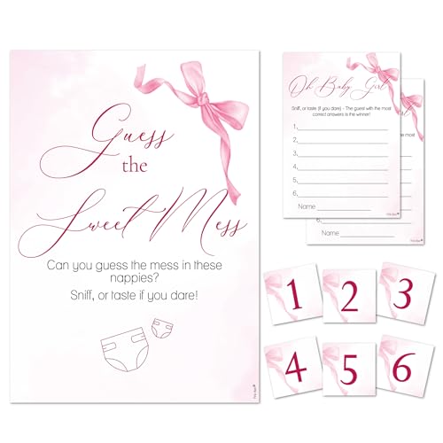 Pink Bee Parties Baby Shower Game Guess the Sweet Mess in Pretty Pink Bow Theme for Baby Girls, Gender Reveal Fun - 40 Player