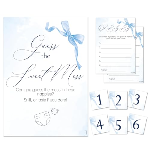Pink Bee Parties Baby Shower Game Guess the Sweet Mess in Pretty Blue Bow Theme for Baby Boys, Gender Reveal Fun - 20 Player