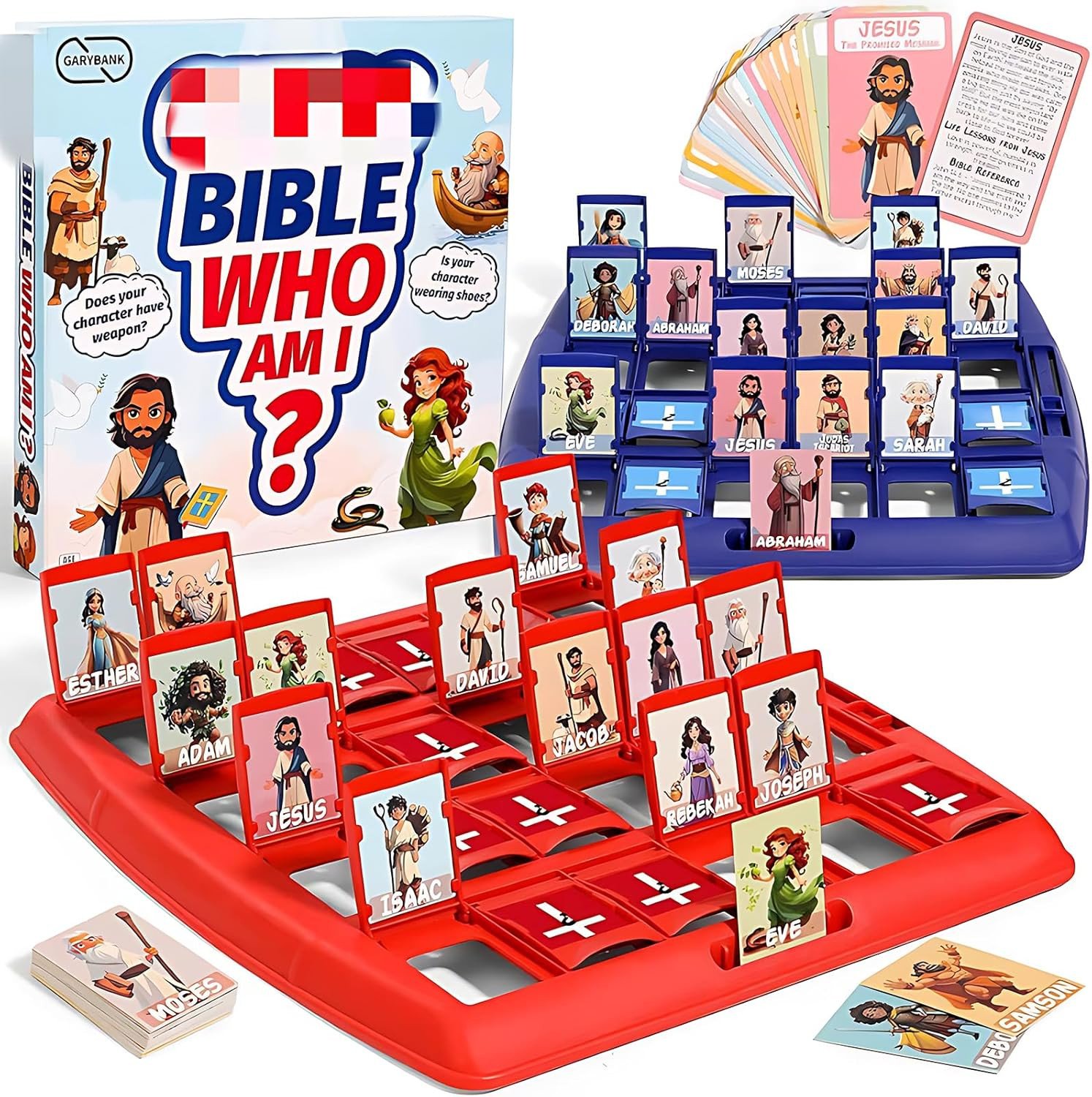 Kouamor Guess Bible Who Am I Game, Guess Who Game, Guesss Bible Who Am I Games, Classic 24 Holy Characters with Life Story & Verse Cards, Intractive Board Games for Kids Family