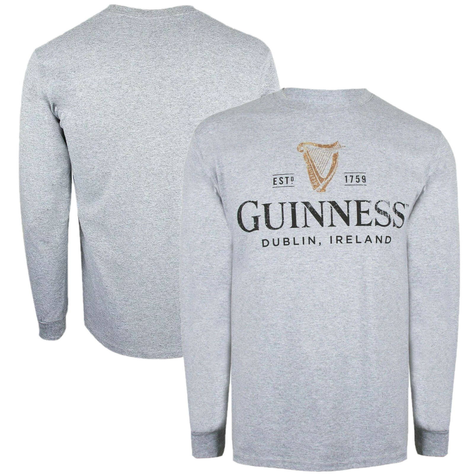 Guiness Harp Men's T-Shirt (Size S) Grey Logo Long Sleeve Top - New