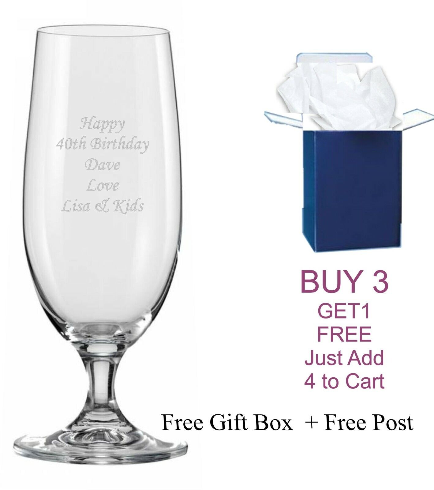 personalised engraved stemmed beer glass cider lager guinness,
