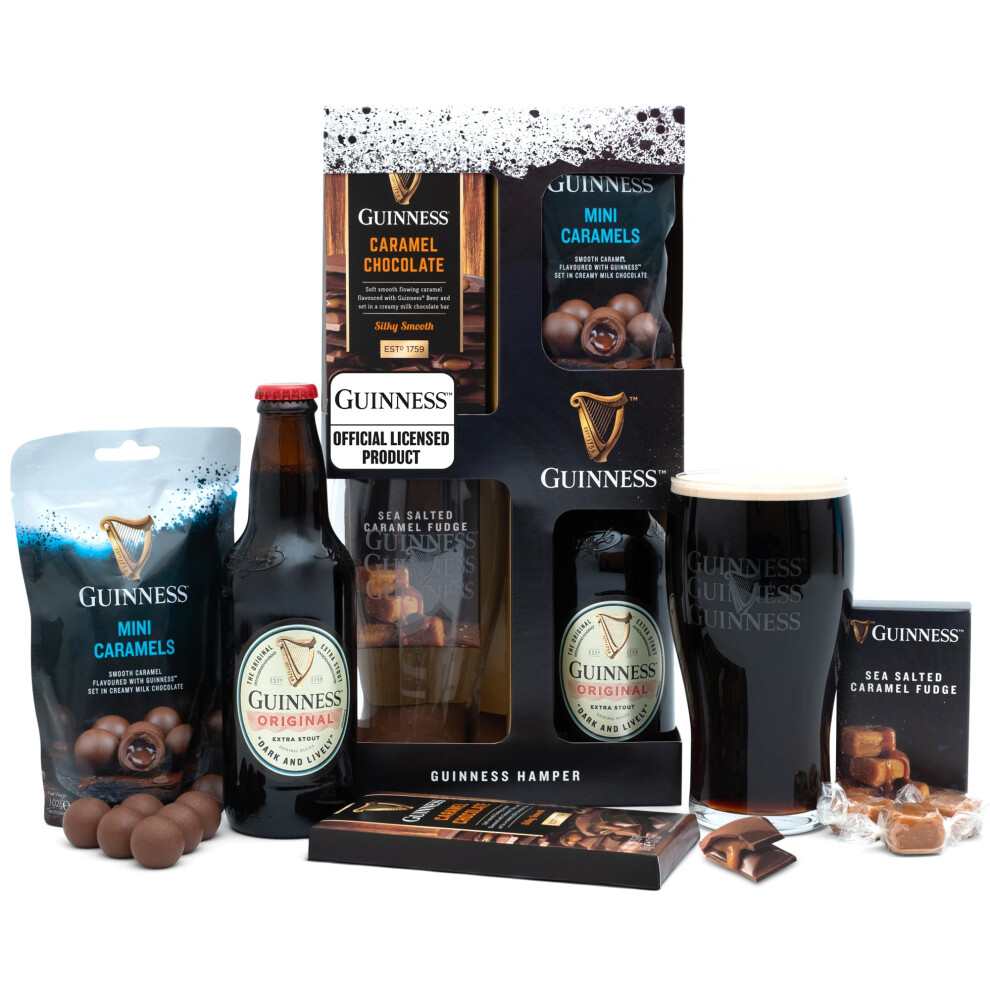 Guinness Gifts for Men, Beer Gift Set - Official Guinness 500ml and Pint Glass, Gourmet Chocolate & Fudge Hampers - Alcohol Gift Sets for Men, Dad