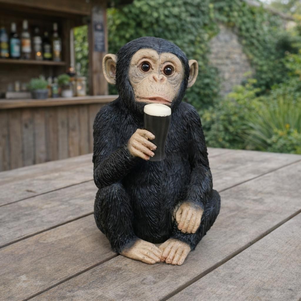 Monkey with Beer Ornament McGuinness Figurine Chimp Novelty Home Bar Decor