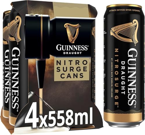 Guinness Draught | Nitrosurge | Stout Beer | 4.1% vol | 4x558ml | Perfect Pub Pour at Home | Beer Cans | Device Sold Separately | Ideal for Festive G