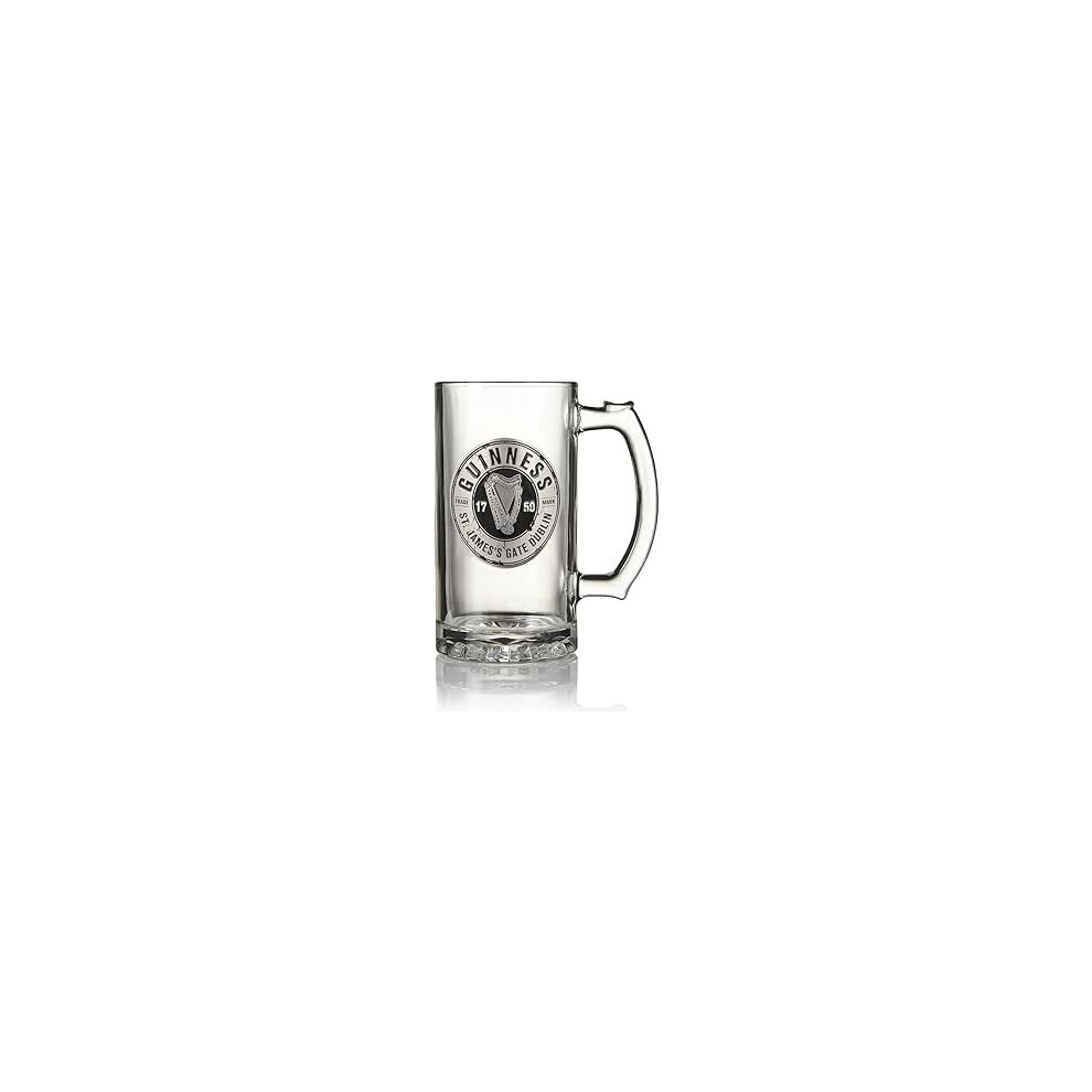 Guinness Label Tankard with Pewter Logo Beer Pub Style Pint Glass - Tankard Style Glass with Metal Badge