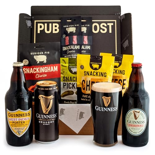 Serious Pig + Guinness Gift Set with Official Guinness Glass and Gourmet Pub Snacks (10 Pack)