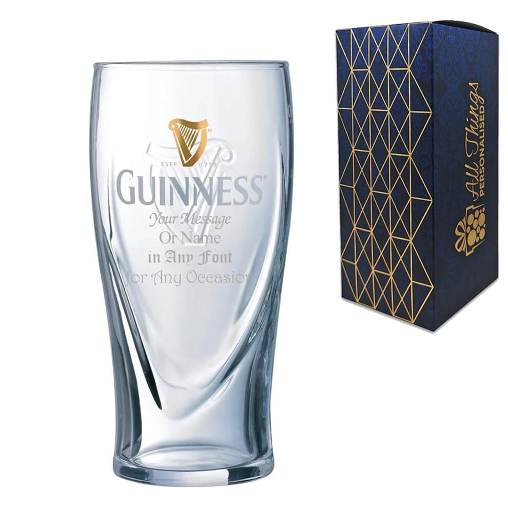 Personalised Engraved Official Guinness Glass, Gift Boxed, Personalise with Any Message for Any Occasion