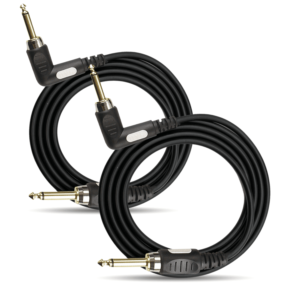 2 x Guitar Leads 6m 6.3mm Angled Jack to 6.3mm Jack Instrument Cables